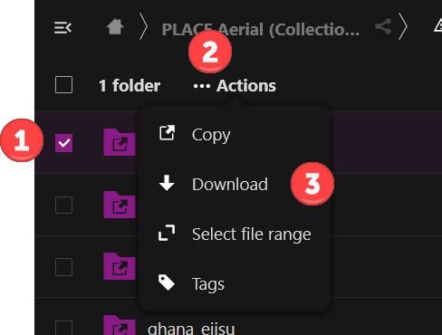 Image Download Only members can access PLACE data. Imagery can be downloaded from PLACE’s secure data repository: You can download individual images or whole folders (note that multiple files are zipped before download): Downloading 1 file Downloading a folder Was this article helpful? Yes No Related Articles Image Catalog